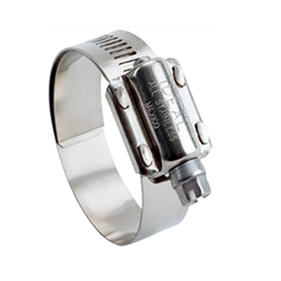 螺母: 5/16″ 六角頭; 410 級不銹鋼 卡帽: 300 級不銹鋼 料帶: 5/8″, 300 級不銹鋼 安裝扭矩: 75到90 英寸-磅. (8.5-10 牛頓米)